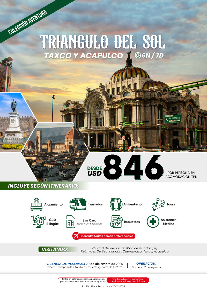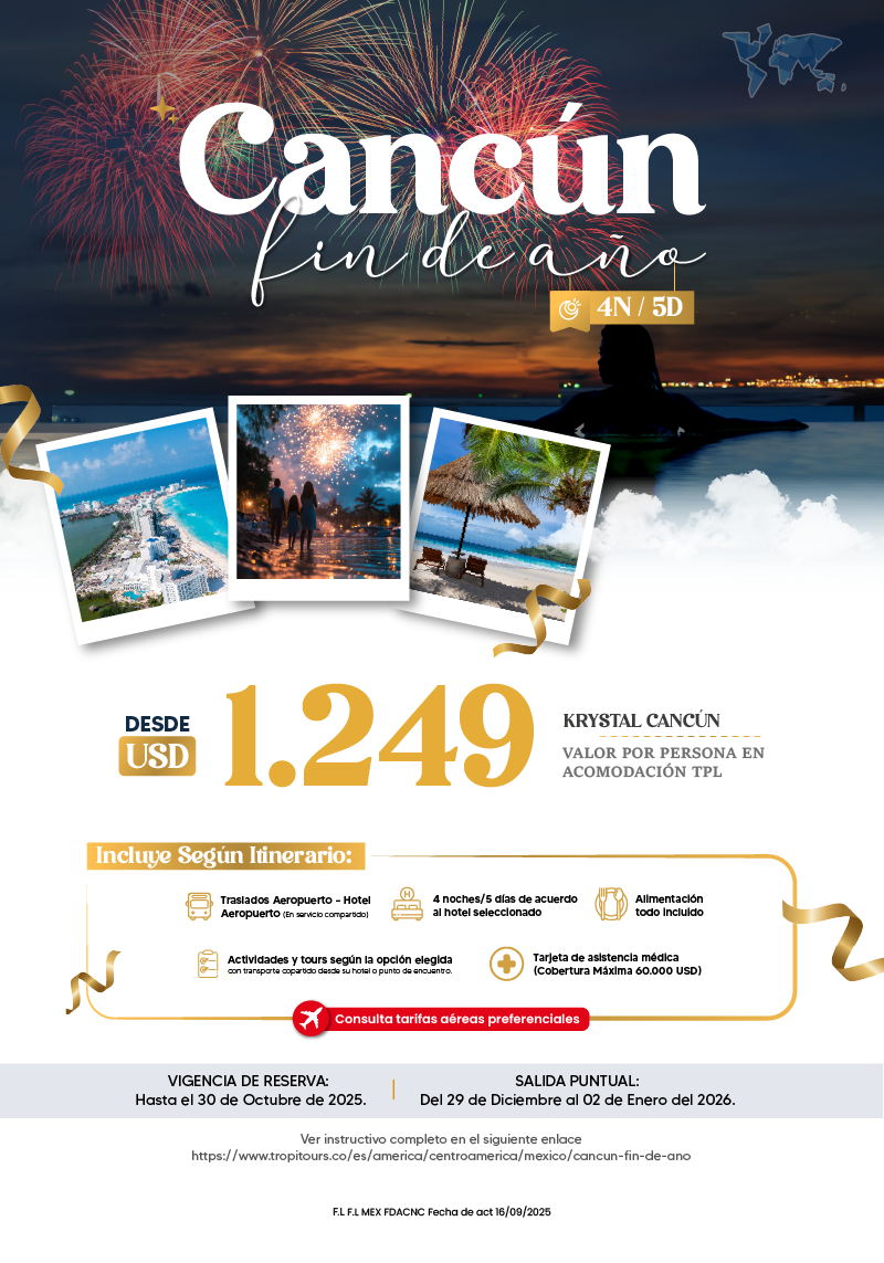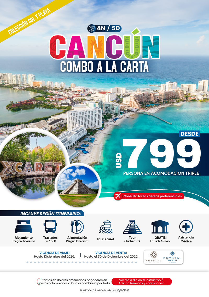 "GRUPO VDT COLOMBIA S A S SIGLA VUELOKEY SAS - TROPITOURS.CO con RNT 83975 se hace responsable de los productos y calidad de los servicios de acuerdo con lo estipulado en la cláusula de responsabilidad sobre el decreto 2438/2010. Nos encontramos comprometidos con el cumplimiento de la Resolución 3860 de 2015 sobre sostenibilidad turística y la ley 679 de 2001 sobre la prevención de la prostitución, la pornografía, el turismo sexual, y demás formas de abuso sexual con niños, niñas y adolescentes. No apoyamos el comercio ilegal de especies de flora y fauna, respetamos y promovemos la conservación de nuestra biodiversidad, acorde a la Ley 17 de 1981 para prevenir, castigar y rechazar todo acto que maltrate y atente contra la vida de las especies animales del país, y la ley 1333 de 2009 para evitar la contaminación o realización de acciones en contra del medio ambiente. No apoyamos el comercio ilegal de bienes culturales, respetamos y promovemos la conservación de nuestra cultura, acorde la ley 63 de 1986 para la prevención del tráfico ilegal de los bienes culturales del país y la ley 1185 de 2008 que busca la salvaguardia, protección, sostenibilidad, divulgación y estímulo para los bienes del patrimonio cultural de la Nación."