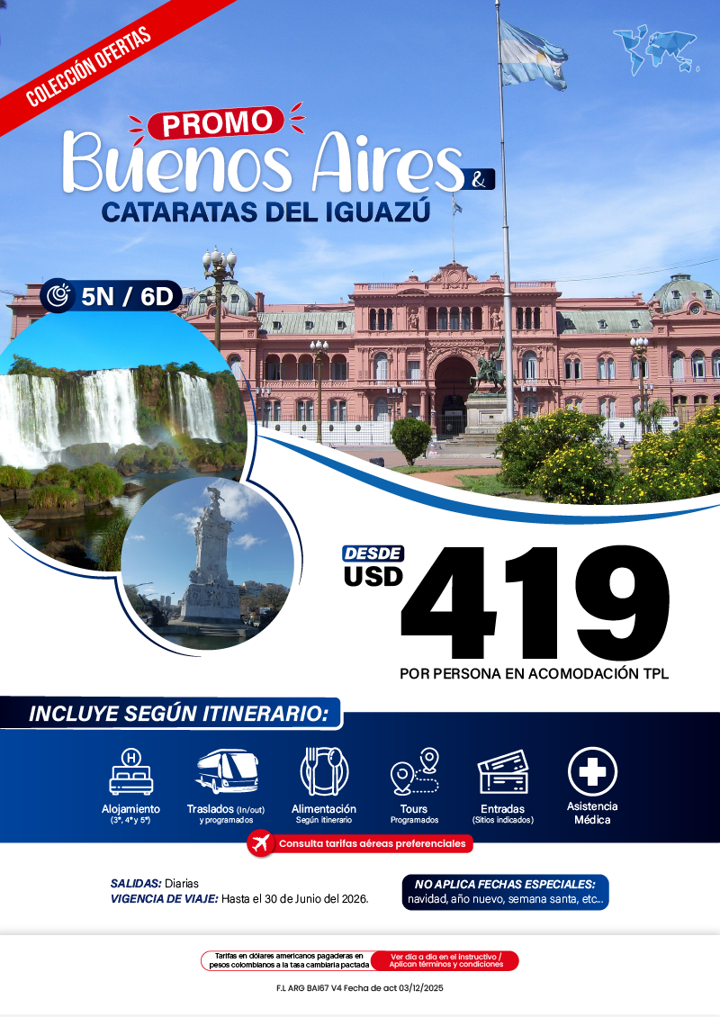 "GRUPO VDT COLOMBIA S A S SIGLA VUELOKEY SAS - TROPITOURS.CO con RNT 83975 se hace responsable de los productos y calidad de los servicios de acuerdo con lo estipulado en la cláusula de responsabilidad sobre el decreto 2438/2010. Nos encontramos comprometidos con el cumplimiento de la Resolución 3860 de 2015 sobre sostenibilidad turística y la ley 679 de 2001 sobre la prevención de la prostitución, la pornografía, el turismo sexual, y demás formas de abuso sexual con niños, niñas y adolescentes. No apoyamos el comercio ilegal de especies de flora y fauna, respetamos y promovemos la conservación de nuestra biodiversidad, acorde a la Ley 17 de 1981 para prevenir, castigar y rechazar todo acto que maltrate y atente contra la vida de las especies animales del país, y la ley 1333 de 2009 para evitar la contaminación o realización de acciones en contra del medio ambiente. No apoyamos el comercio ilegal de bienes culturales, respetamos y promovemos la conservación de nuestra cultura, acorde la ley 63 de 1986 para la prevención del tráfico ilegal de los bienes culturales del país y la ley 1185 de 2008 que busca la salvaguardia, protección, sostenibilidad, divulgación y estímulo para los bienes del patrimonio cultural de la Nación."