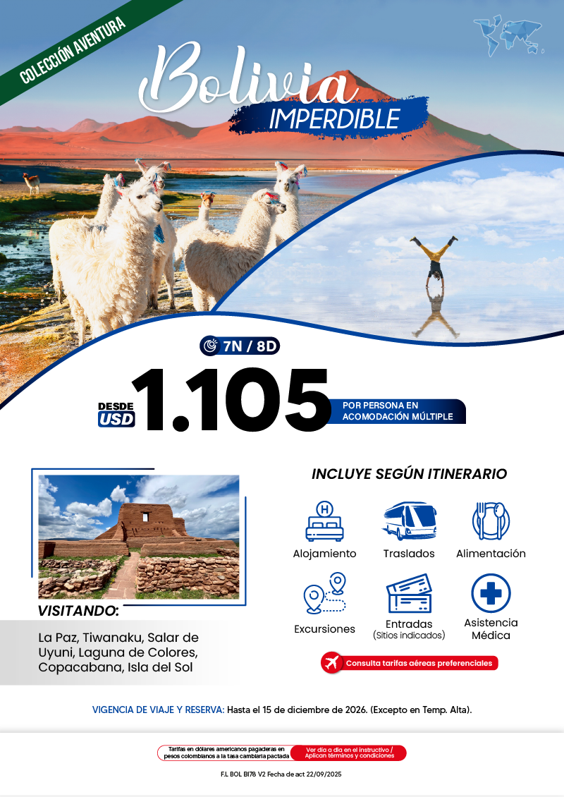 La Paz – Tiwanaku – Salar de Uyuni – Laguna de Colores – Copacabana – Isla del Sol – La Paz