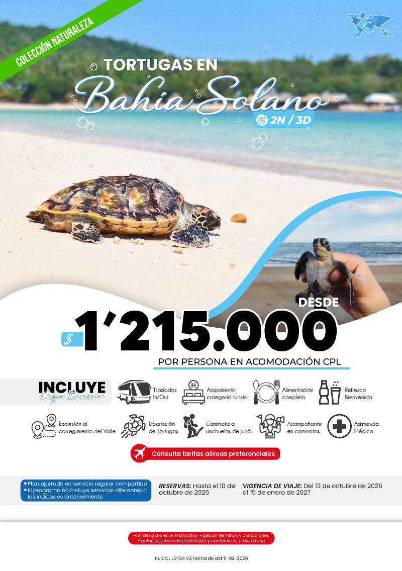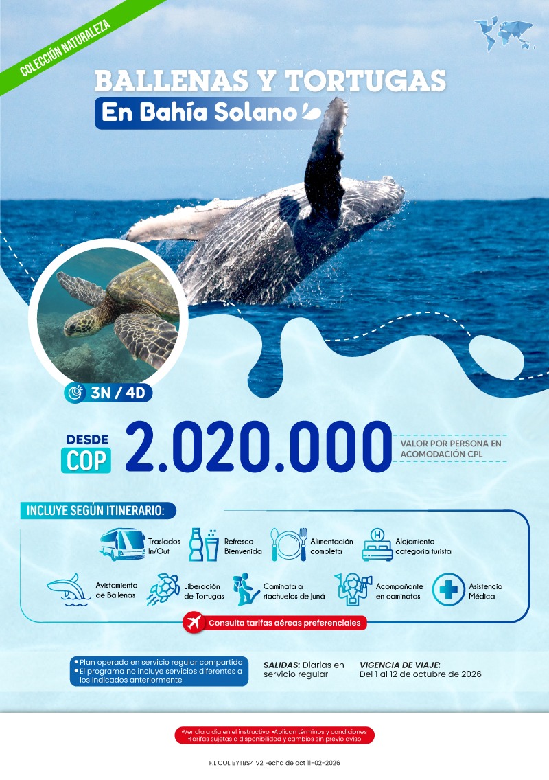 "GRUPO VDT COLOMBIA S A S SIGLA VUELOKEY SAS - TROPITOURS.CO con RNT 83975 se hace responsable de los productos y calidad de los servicios de acuerdo con lo estipulado en la cláusula de responsabilidad sobre el decreto 2438/2010. Nos encontramos comprometidos con el cumplimiento de la Resolución 3860 de 2015 sobre sostenibilidad turística y la ley 679 de 2001 sobre la prevención de la prostitución, la pornografía, el turismo sexual, y demás formas de abuso sexual con niños, niñas y adolescentes. No apoyamos el comercio ilegal de especies de flora y fauna, respetamos y promovemos la conservación de nuestra biodiversidad, acorde a la Ley 17 de 1981 para prevenir, castigar y rechazar todo acto que maltrate y atente contra la vida de las especies animales del país, y la ley 1333 de 2009 para evitar la contaminación o realización de acciones en contra del medio ambiente. No apoyamos el comercio ilegal de bienes culturales, respetamos y promovemos la conservación de nuestra cultura, acorde la ley 63 de 1986 para la prevención del tráfico ilegal de los bienes culturales del país y la ley 1185 de 2008 que busca la salvaguardia, protección, sostenibilidad, divulgación y estímulo para los bienes del patrimonio cultural de la Nación."