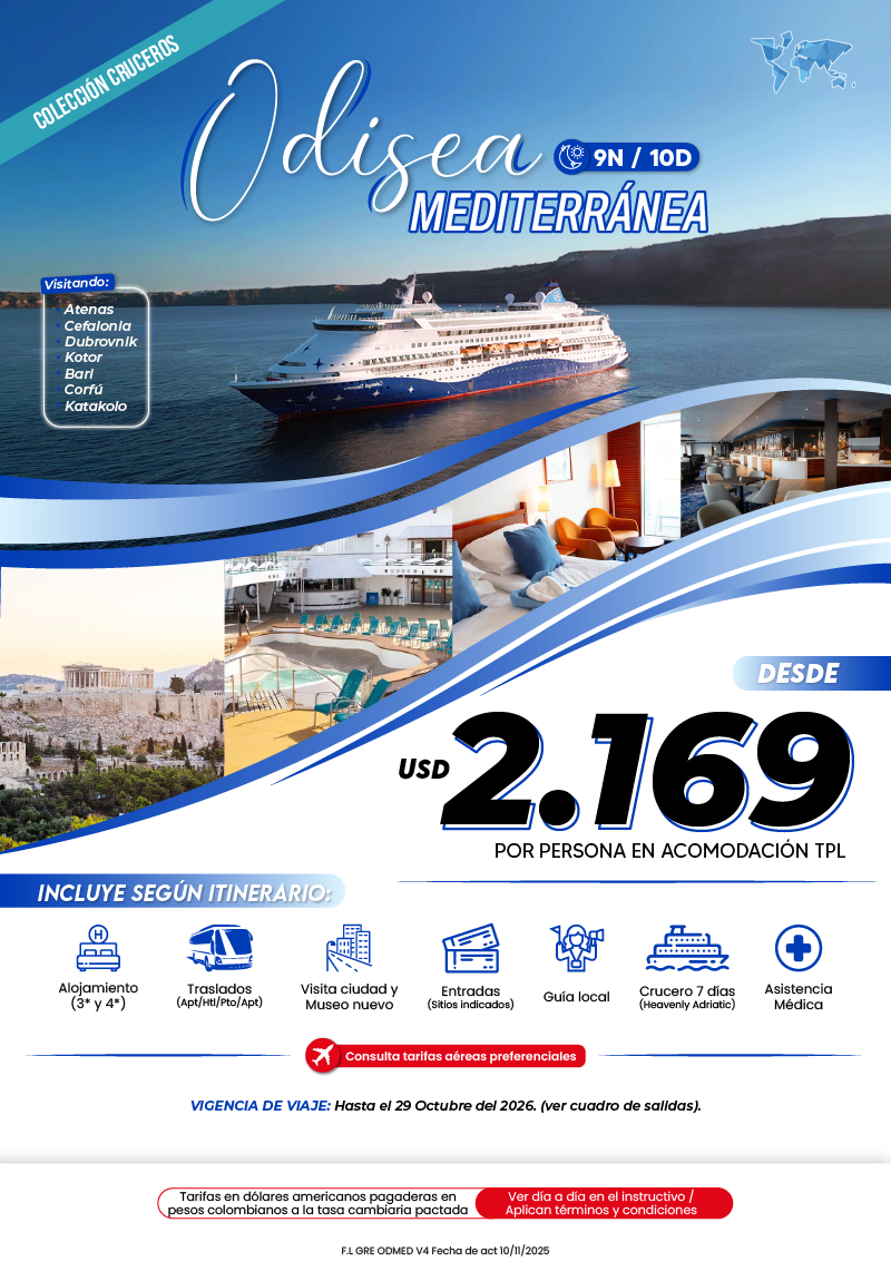 Atenas, Cefalonia, Dubrovnik, Kotor, Bari, Corfú, Katakolo