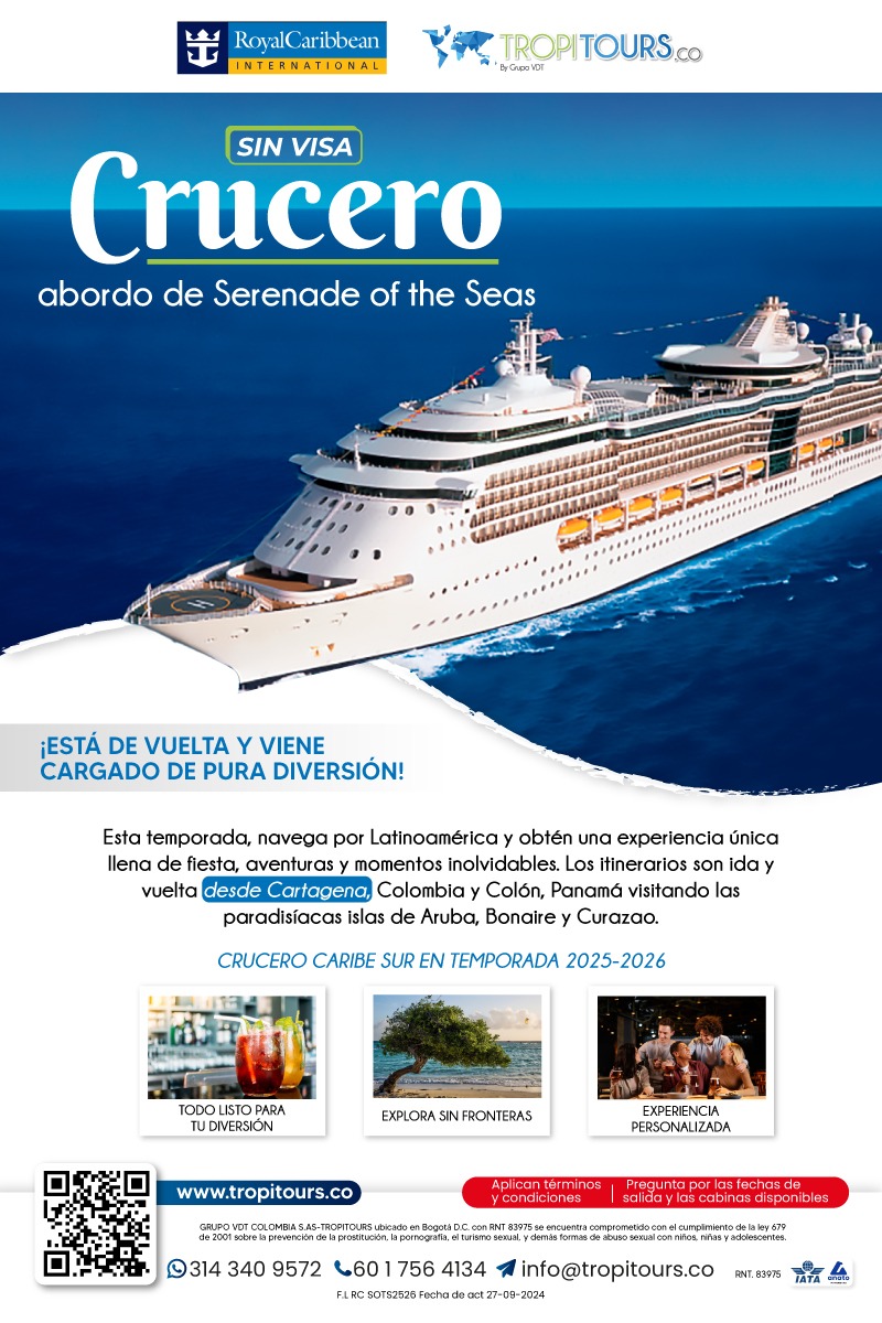 Esta temporada, navega por Latinoamérica y obtén una experiencia única llena de fiesta, aventuras y momentos inolvidables. Los itinerarios son ida y vuelta desde Cartagena, Colombia y Colón, Panamá visitando las paradisíacas islas de Aruba, Bonaire y Curazao. ** SIN VISA **
