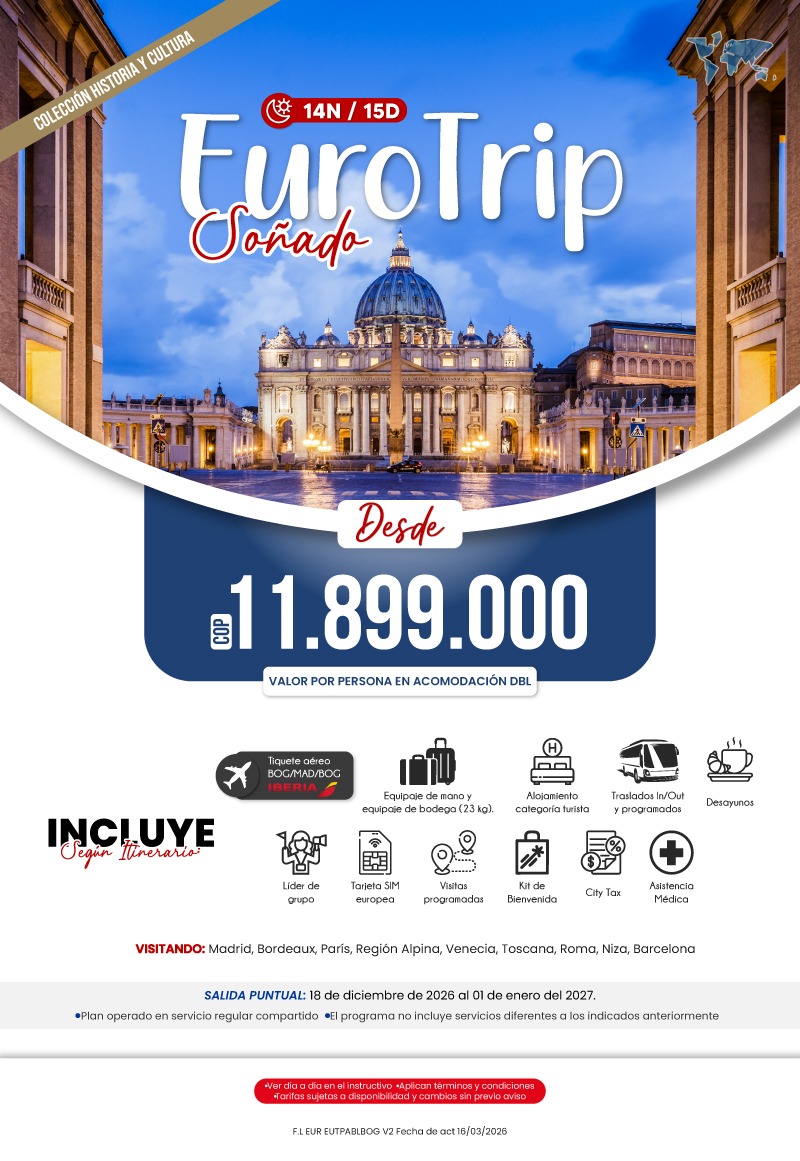 "GRUPO VDT COLOMBIA S A S SIGLA VUELOKEY SAS - TROPITOURS.CO con RNT 83975 se hace responsable de los productos y calidad de los servicios de acuerdo con lo estipulado en la cláusula de responsabilidad sobre el decreto 2438/2010. Nos encontramos comprometidos con el cumplimiento de la Resolución 3860 de 2015 sobre sostenibilidad turística y la ley 679 de 2001 sobre la prevención de la prostitución, la pornografía, el turismo sexual, y demás formas de abuso sexual con niños, niñas y adolescentes. No apoyamos el comercio ilegal de especies de flora y fauna, respetamos y promovemos la conservación de nuestra biodiversidad, acorde a la Ley 17 de 1981 para prevenir, castigar y rechazar todo acto que maltrate y atente contra la vida de las especies animales del país, y la ley 1333 de 2009 para evitar la contaminación o realización de acciones en contra del medio ambiente. No apoyamos el comercio ilegal de bienes culturales, respetamos y promovemos la conservación de nuestra cultura, acorde la ley 63 de 1986 para la prevención del tráfico ilegal de los bienes culturales del país y la ley 1185 de 2008 que busca la salvaguardia, protección, sostenibilidad, divulgación y estímulo para los bienes del patrimonio cultural de la Nación."