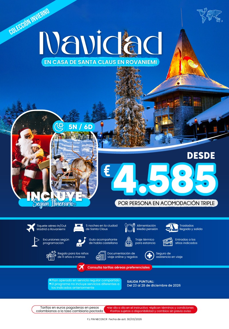 (Incluye tiquetes aéreos directo desde Madrid a Rovaniemi)