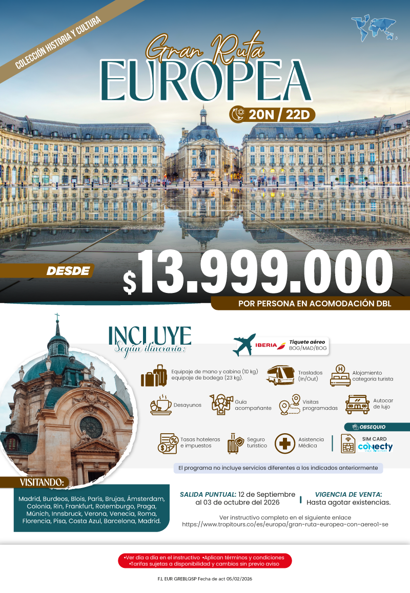 SALIDA PUNTUAL: 12 de Septiembre al 03 de octubre del 2026.