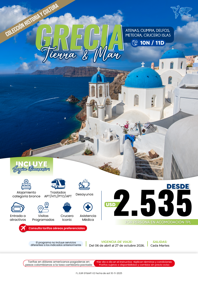 "GRUPO VDT COLOMBIA S A S SIGLA VUELOKEY SAS - TROPITOURS.CO con RNT 83975 se hace responsable de los productos y calidad de los servicios de acuerdo con lo estipulado en la cláusula de responsabilidad sobre el decreto 2438/2010. Nos encontramos comprometidos con el cumplimiento de la Resolución 3860 de 2015 sobre sostenibilidad turística y la ley 679 de 2001 sobre la prevención de la prostitución, la pornografía, el turismo sexual, y demás formas de abuso sexual con niños, niñas y adolescentes. No apoyamos el comercio ilegal de especies de flora y fauna, respetamos y promovemos la conservación de nuestra biodiversidad, acorde a la Ley 17 de 1981 para prevenir, castigar y rechazar todo acto que maltrate y atente contra la vida de las especies animales del país, y la ley 1333 de 2009 para evitar la contaminación o realización de acciones en contra del medio ambiente. No apoyamos el comercio ilegal de bienes culturales, respetamos y promovemos la conservación de nuestra cultura, acorde la ley 63 de 1986 para la prevención del tráfico ilegal de los bienes culturales del país y la ley 1185 de 2008 que busca la salvaguardia, protección, sostenibilidad, divulgación y estímulo para los bienes del patrimonio cultural de la Nación."
