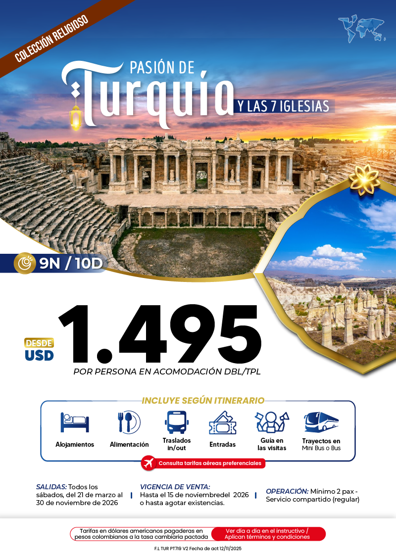 "GRUPO VDT COLOMBIA S A S SIGLA VUELOKEY SAS - TROPITOURS.CO con RNT 83975 se hace responsable de los productos y calidad de los servicios de acuerdo con lo estipulado en la cláusula de responsabilidad sobre el decreto 2438/2010. Nos encontramos comprometidos con el cumplimiento de la Resolución 3860 de 2015 sobre sostenibilidad turística y la ley 679 de 2001 sobre la prevención de la prostitución, la pornografía, el turismo sexual, y demás formas de abuso sexual con niños, niñas y adolescentes. No apoyamos el comercio ilegal de especies de flora y fauna, respetamos y promovemos la conservación de nuestra biodiversidad, acorde a la Ley 17 de 1981 para prevenir, castigar y rechazar todo acto que maltrate y atente contra la vida de las especies animales del país, y la ley 1333 de 2009 para evitar la contaminación o realización de acciones en contra del medio ambiente. No apoyamos el comercio ilegal de bienes culturales, respetamos y promovemos la conservación de nuestra cultura, acorde la ley 63 de 1986 para la prevención del tráfico ilegal de los bienes culturales del país y la ley 1185 de 2008 que busca la salvaguardia, protección, sostenibilidad, divulgación y estímulo para los bienes del patrimonio cultural de la Nación."